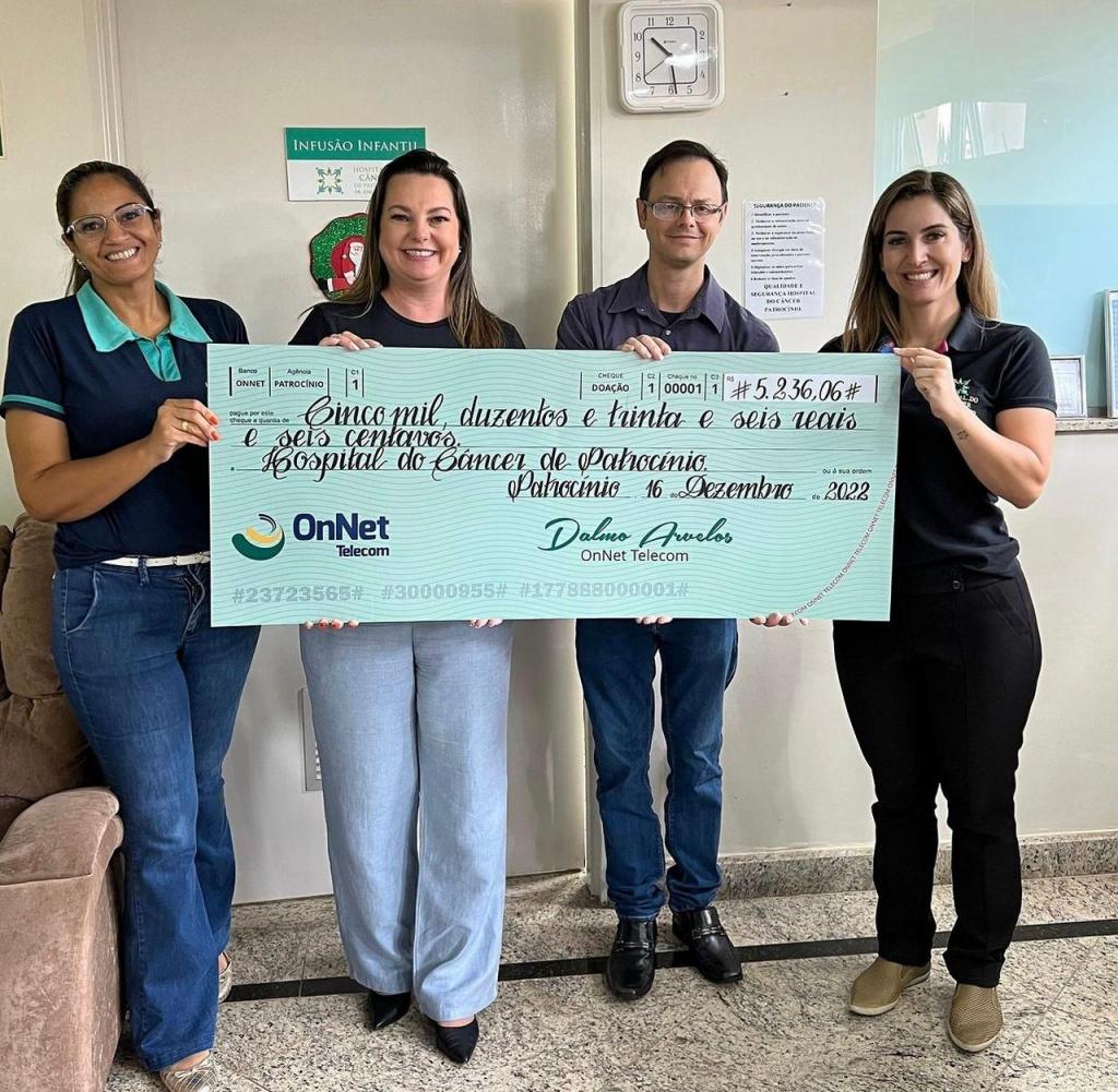 A OnNet se tornou mais uma grande parceira do Hospital do Câncer de Patrocínio. Nesta semana foi realizada a doação de dois cheques no valor total de R$ 15.891,26!